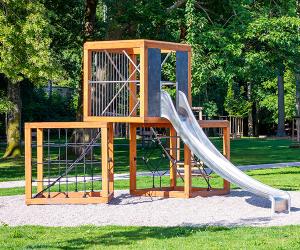 Multifunkční prolézačku a houpačky pro starší děti naleznete ve střední části parku na druhé straně dráhy pro odrážedla.
